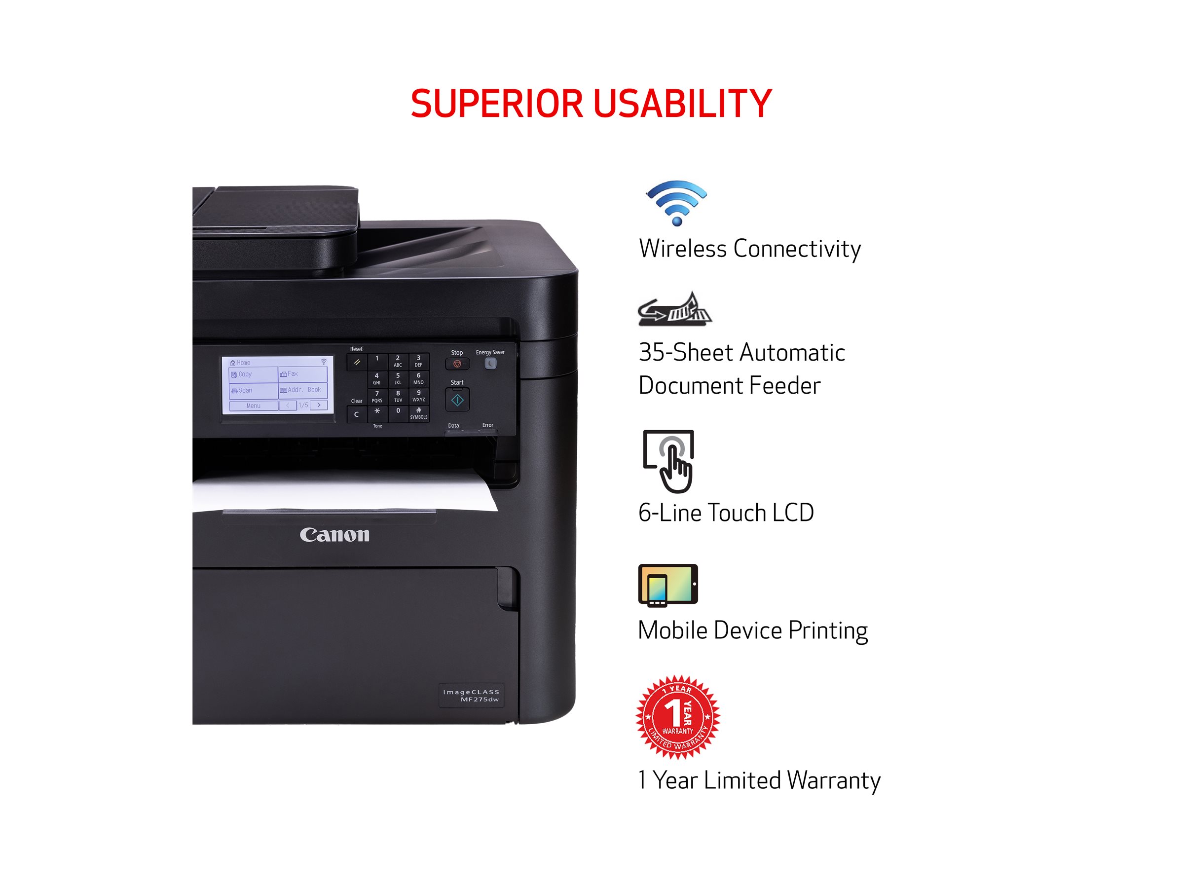 Ispis do 30 stranica u minuti (crno-bijelo, u boji); brzina prvog ispisa od približno 5,1 sekunde (u boji)